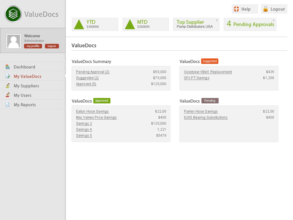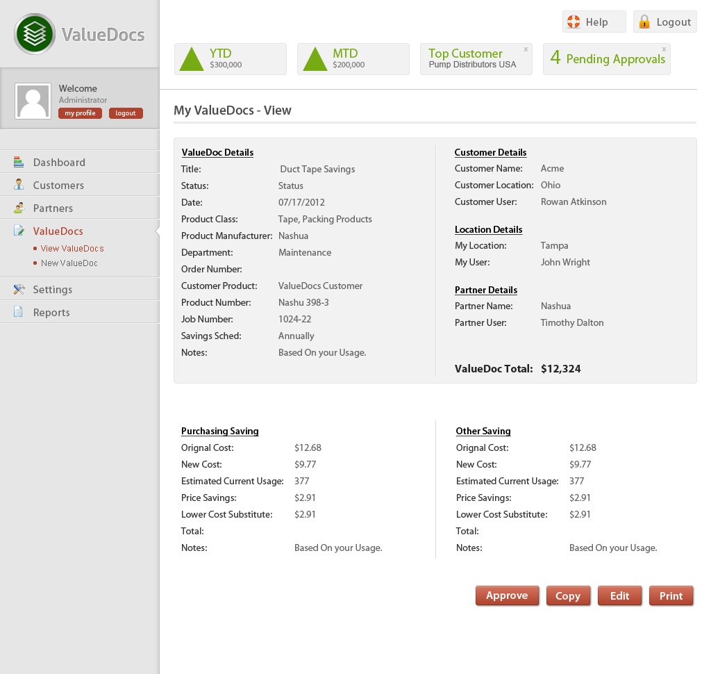 ValueDocs.com is the leader in documented cost savings software for the supply chain. With ValueDocs.com, you can build your own savings calculators, document the savings for your customers and share those savings with them.